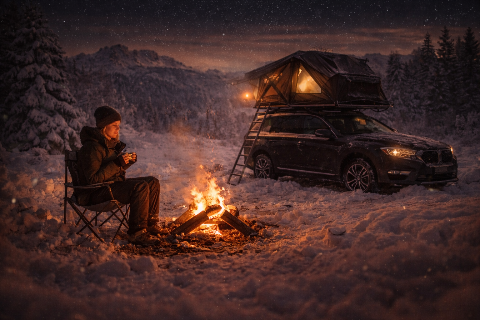 Zaparkuješ kde chceš. Rozložíš za minutu. Žádné hotely, žádné rezervace, žádné limity. Jen ty, hory a noc nad krajinou.